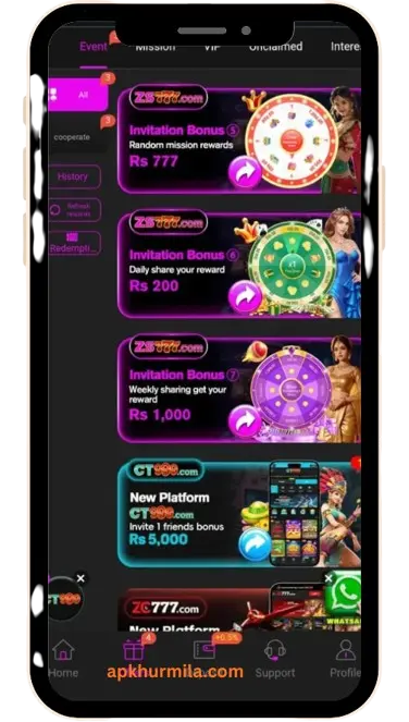 Some versions of ZS777 include reward systems where users may receive bonuses, promotional credits, or referral rewards. Because of this, the app is often searched as a reward gaming platform. Still, it is important to understand that most games are luck-based and results are not guaranteed.ZS777 should be seen as an entertainment gaming app, not a stable income source. Responsible use is always recommended.